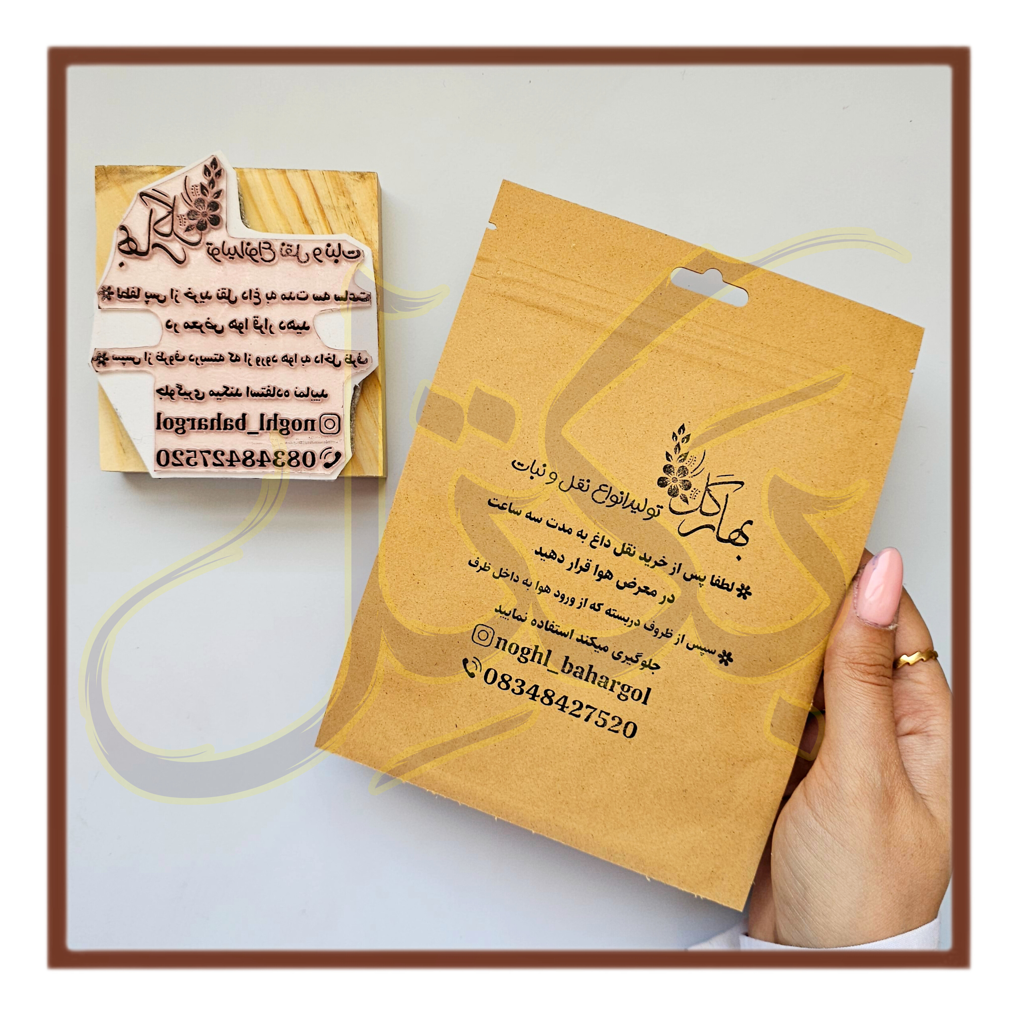 اگه دوست داری بستهبندیت خاصتر و حرفهایتر دیده بشه، مهر سفارشی بهترین انتخابه. توی این بخش میتونی طرح دلخواهت، لوگو یا نوشتهی مخصوص کسبوکارت رو برامون بفرستی و ما اون رو تبدیل به یک مهر شیک و باکیفیت میکنیم.